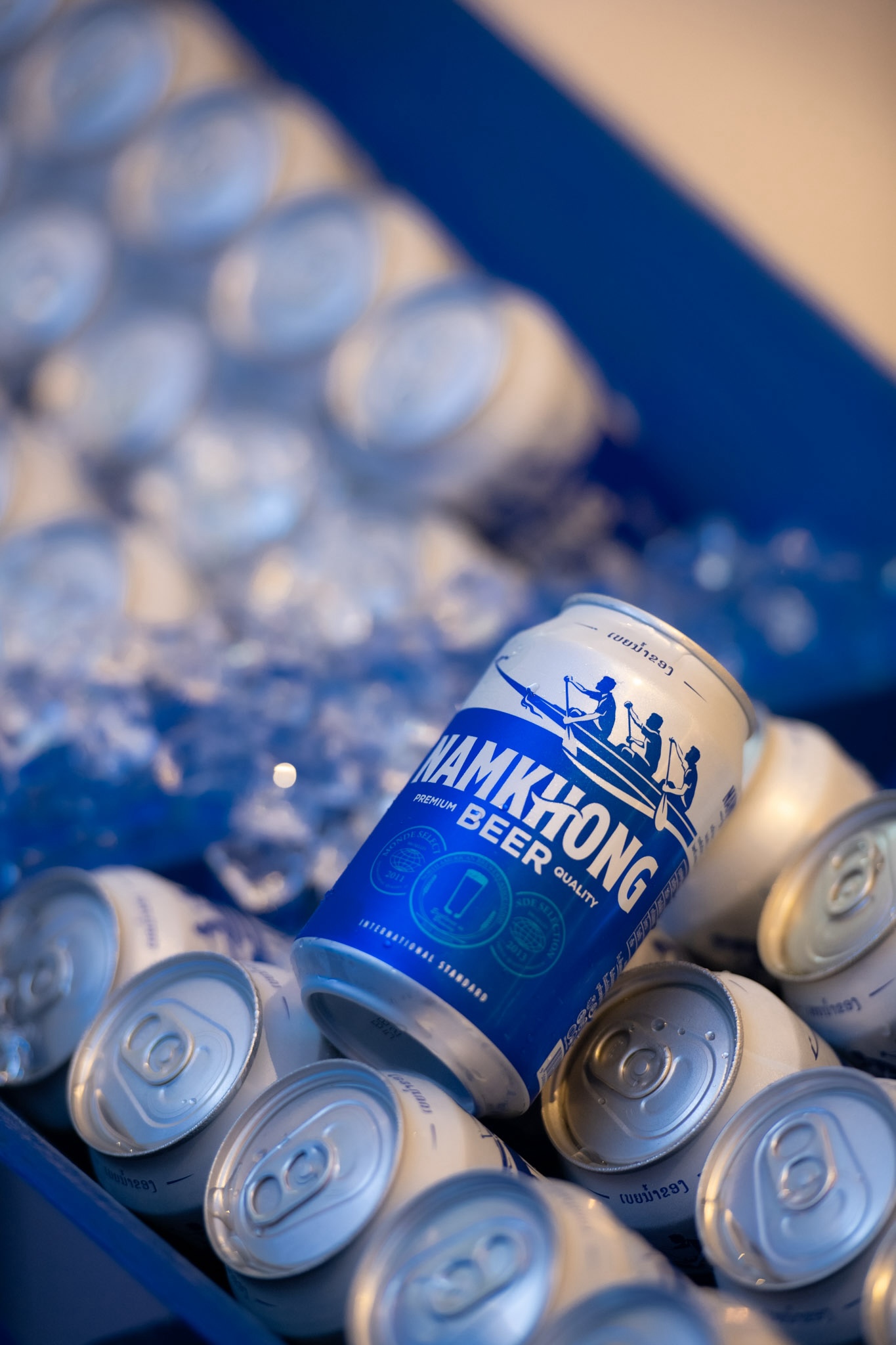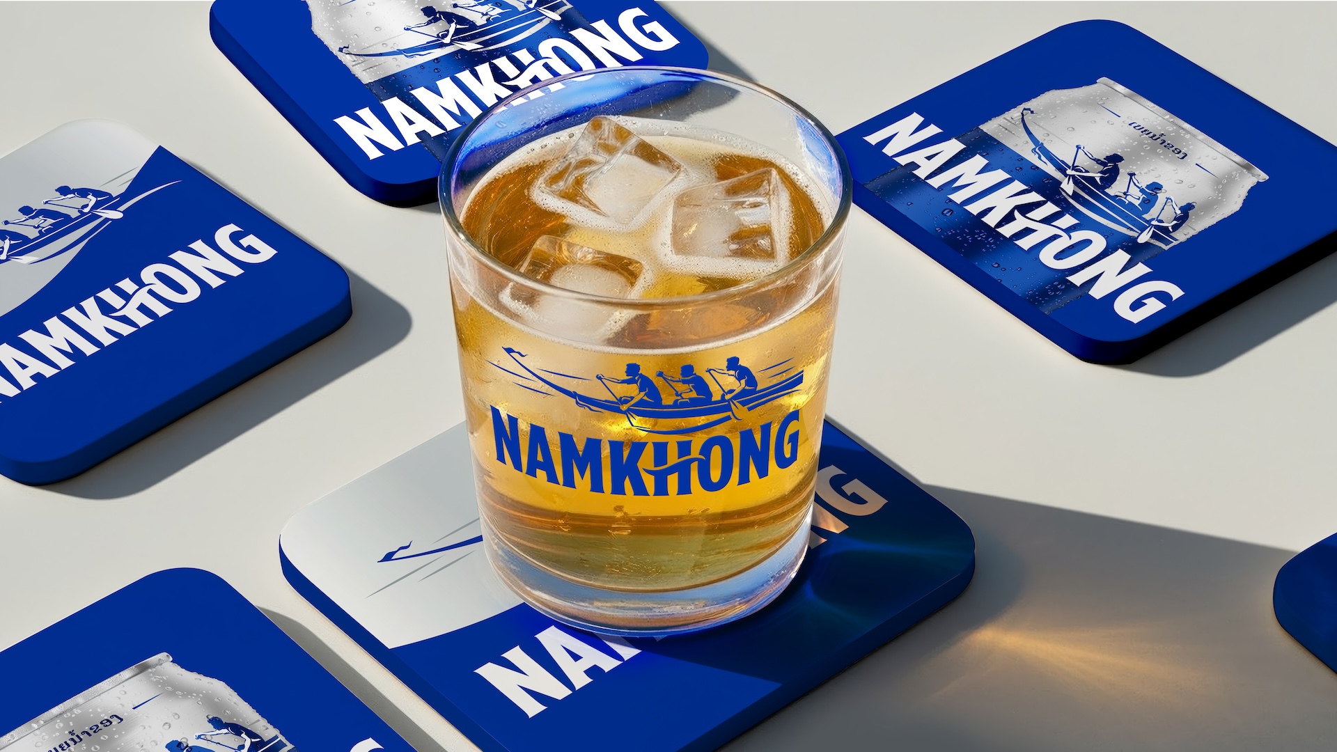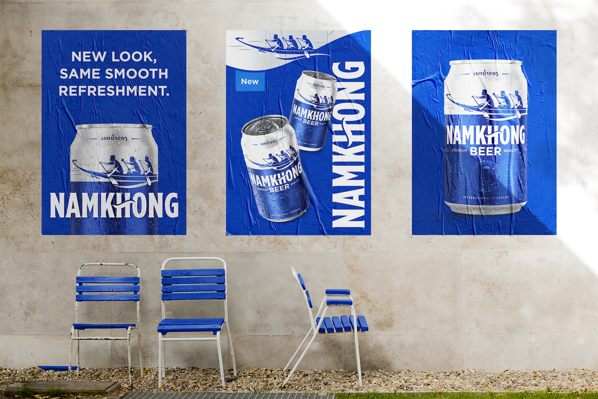 Pour Heineken Laos, nous avons repensé Namkhong afin de séduire une génération urbaine plus jeune, tout en préservant l’esprit sabai sabai. Nous avons clarifié l’idée de marque – “suivre le courant” – et l’avons traduite en un système visuel cohérent déployé sur canette, bouteille et carton : un logotype affiné, traversé de subtiles ondulations évoquant la rivière du Mékong ; une icône de pirogue repensée, passant du symbole de compétition à une expérience collective et joyeuse – rameurs redessinés, lignes de mouvement et vagues soulignant fluidité et complicité ; et un bleu profond inspiré du fleuve, qui tranche avec les verts et jaunes dominants du rayon bière au Laos. Le carton devient un bloc bleu affirmé, véritable phare de marque. Une typographie plus acérée, une hiérarchie plus lisible et une mise en page resserrée renforcent cohérence et impact à chaque point de contact.